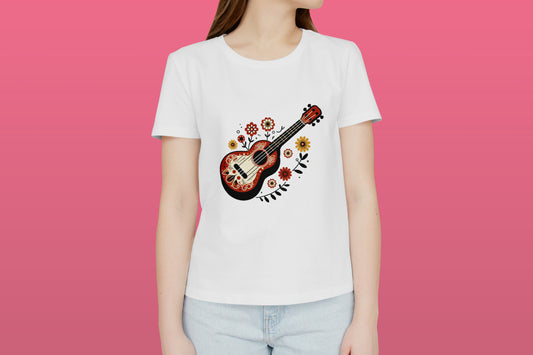 Regular price Rs. 499.00Regular priceUnit price / perRs. 1,100.00Sale price Rs. 499.00Guitar White Printed Regular Fit Women T-Shirt
