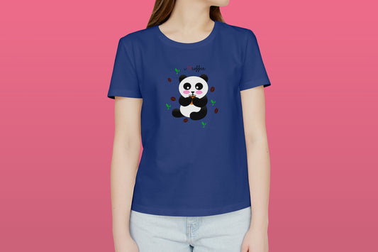 I Love Coffee Panda Blue Printed Regular Fit Women T-Shirt