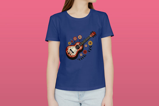 Regular price Rs. 499.00Regular priceUnit price / perRs. 1,100.00Sale price Rs. 499.00Guitar Blue Printed Regular Fit Women T-Shirt