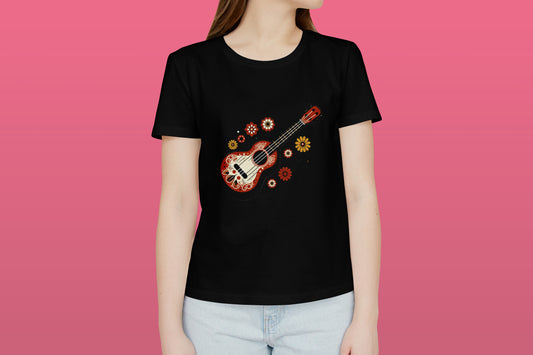 Regular price Rs. 499.00Regular priceUnit price / perRs. 1,100.00Sale price Rs. 499.00Guitar Black Printed Regular Fit Women T-Shirt