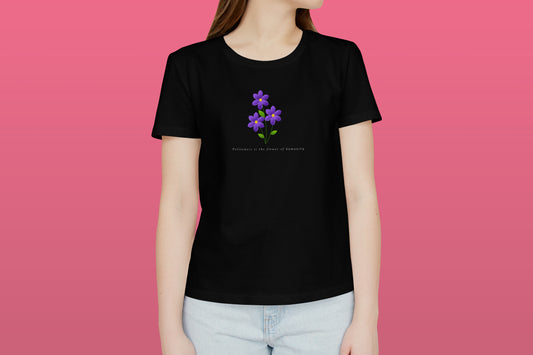 Flowerl Black Printed Regular Fit Girl T-Shirt