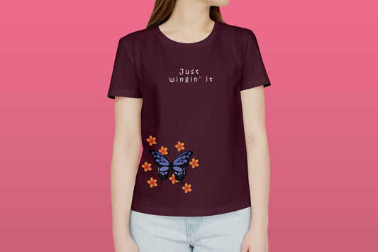 Butterfly Maroon Printed Regular Fit Women T-Shirt
