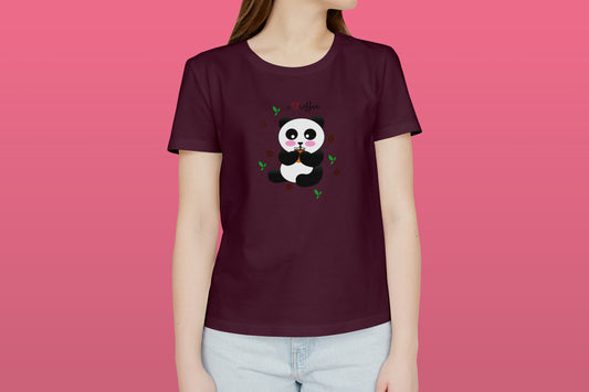 I Love Coffee Panda Maroon Printed Regular Fit Women T-Shirt