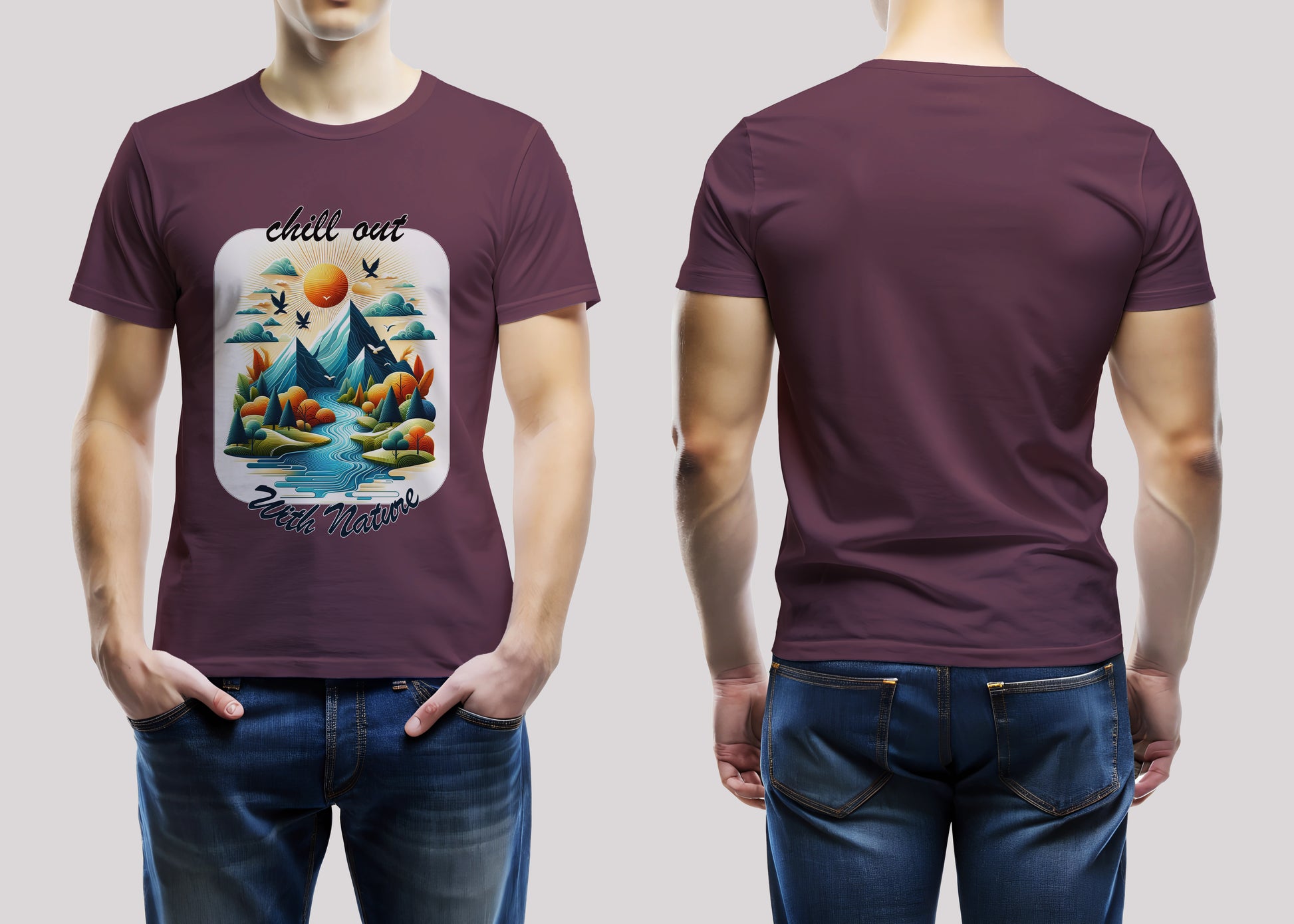 Chill With Nature Maroon Printed Regular Fit Unisex T-Shirt