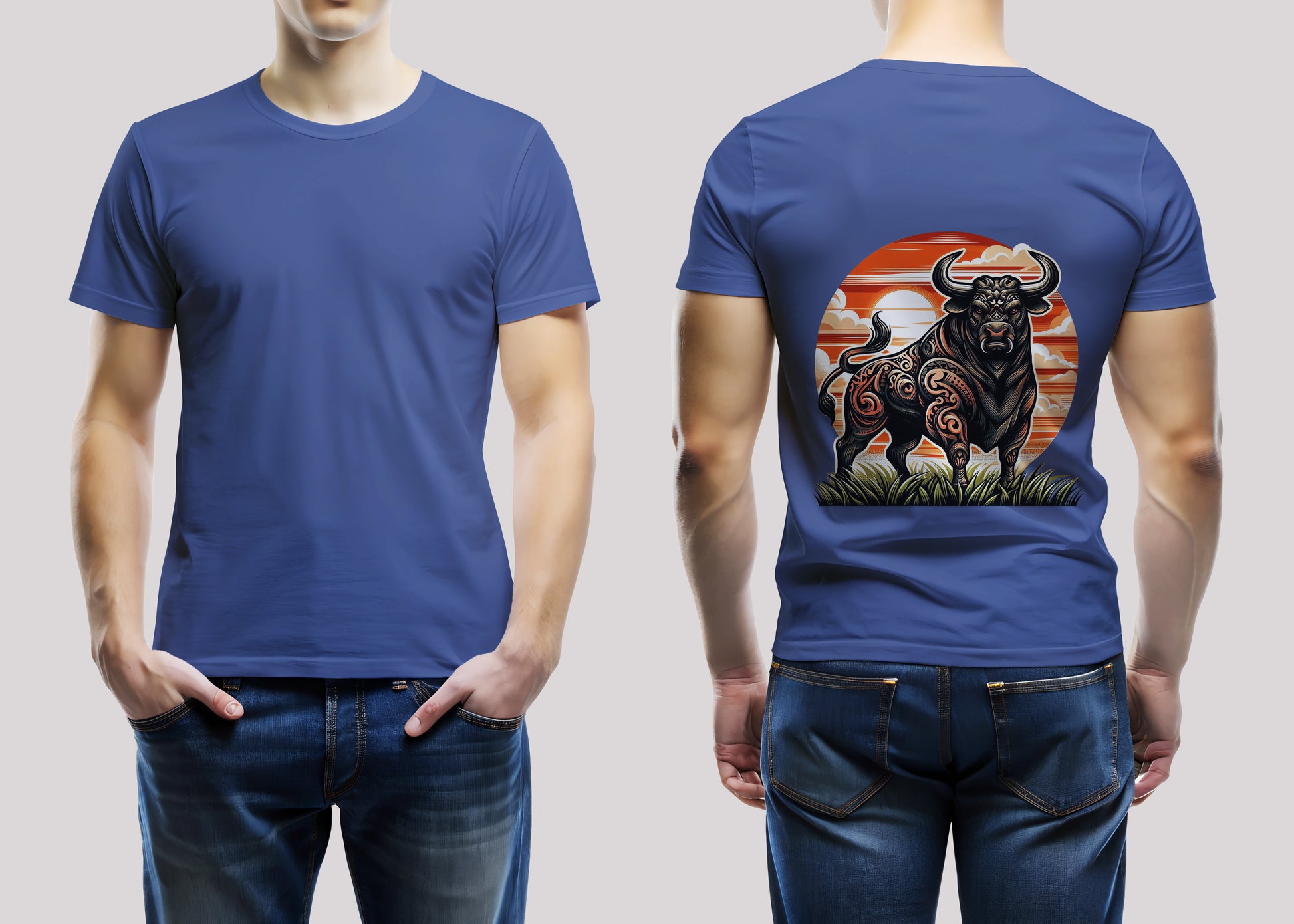 Two Tail Bull Royal Blue Printed Regular Fit Unisex T-Shirt